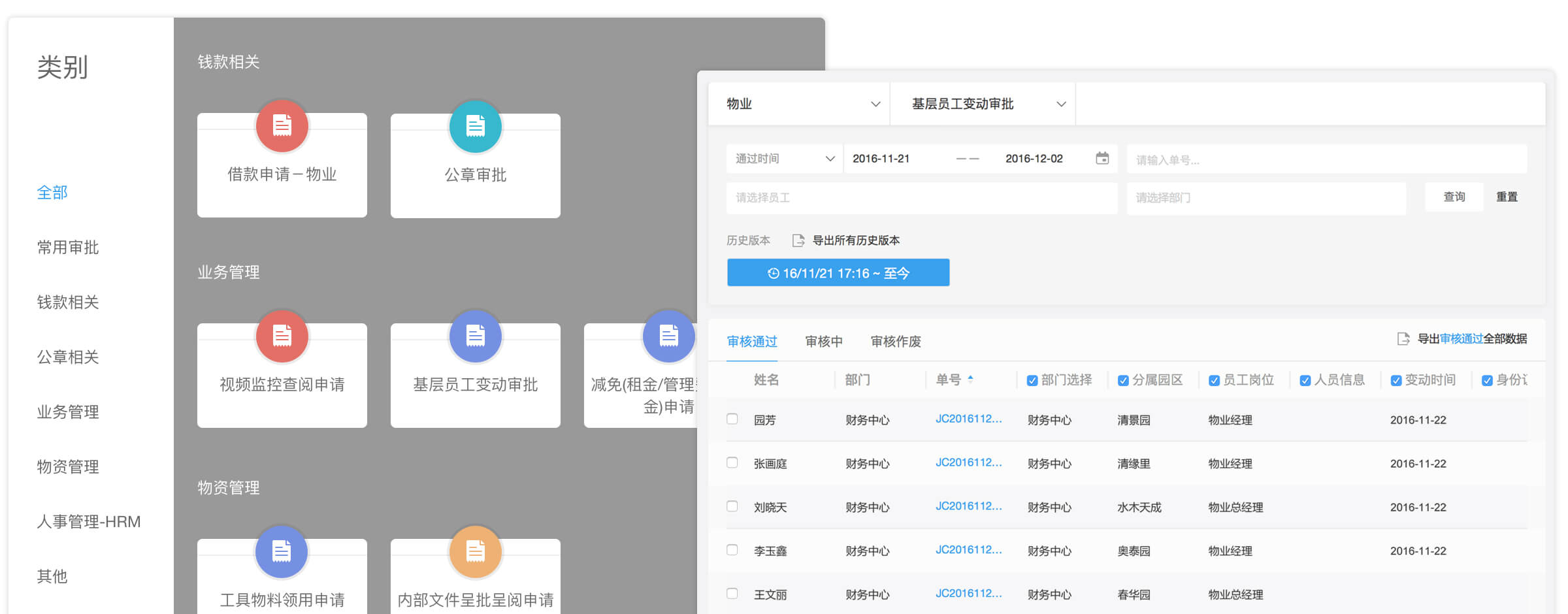微办公预置各种行政、财务审批表单,满足不同场景审批需求。同时支持根据特殊场景自定义设置表单内容、审批流程。电脑端和手机端均可操作,再也不会因为时间、空间的限制影响审批进度。即使审批节点中的员工离职也可以通过“审批流程阻塞处理”功能轻松解决。